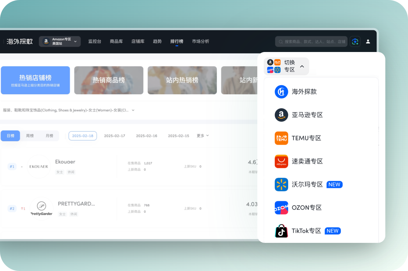 覆盖亚马逊、TEMU、Tik Tok、速卖通、OZON及沃尔玛等电商平台数据